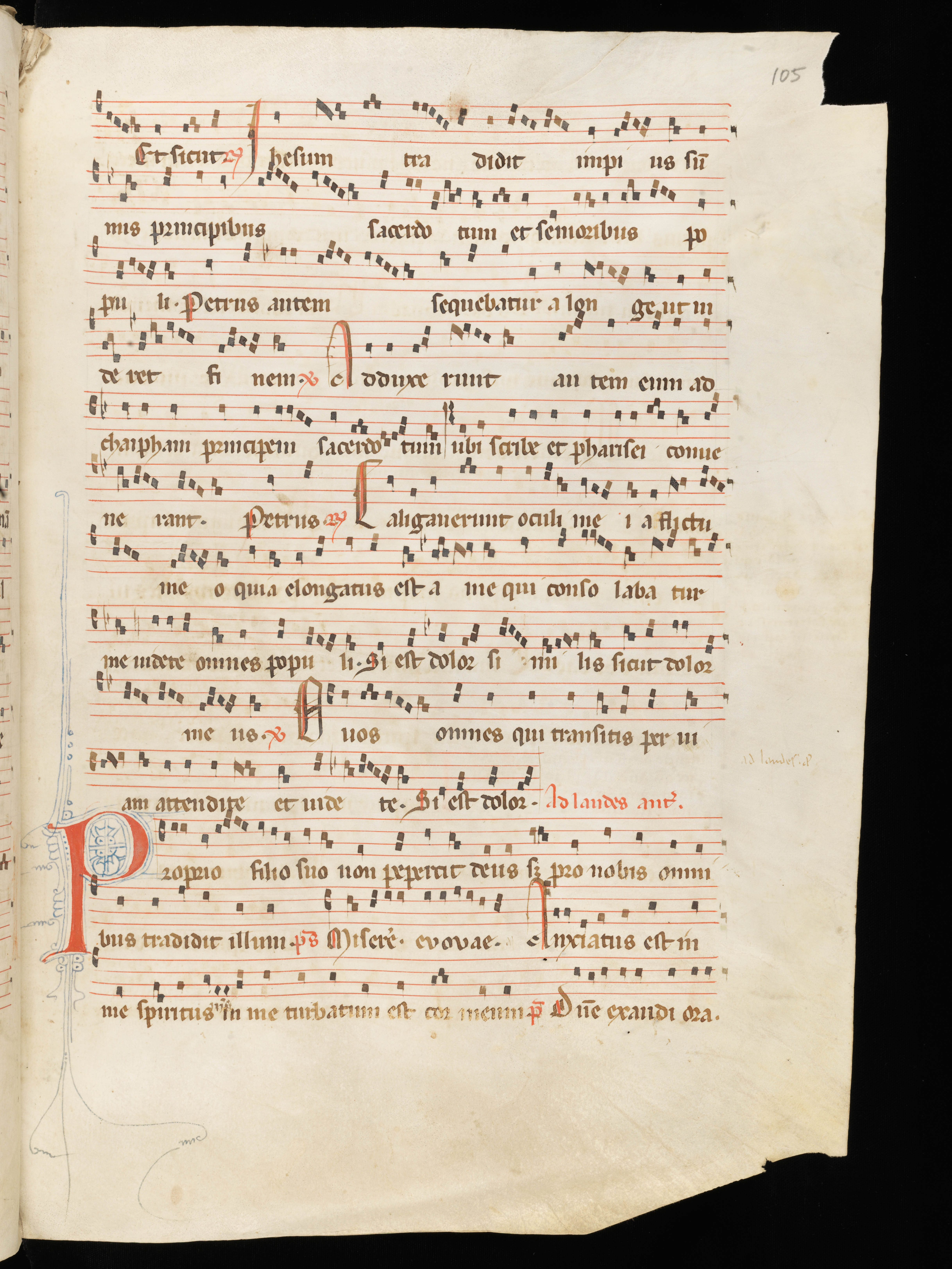 In het Franciscanenklooster van Fribourg/Freiburg in Zwitserland wordt een antiphonale (een boek met gezangen voor het officie) bewaard dat mogelijk, of zelfs zeer waarschijnlijk, daar ter plekke gemaakt werd aan het eind van de dertiende eeuw. Het klooster werd gesticht in 1254, op een ogenblik dat de nog zeer jonge orde (gesticht in 1209 door Franciscus zelf) in volle expansie was. Er wordt geschat dat de orde van de Franciscanen tegen het eind van de dertiende eeuw 35.000 leden telde. Het manuscript is zeker na 1260 gemaakt, omdat er bepaalde teksten gebruikt worden die in dat jaar op het Generaal Kapittel van de orde werden vastgelegd. Het is zeker Franciscaans, gezien de aanwezigheid van officies (verzamelingen van gezangen voor bebaalde gebedsdiensten) voor onder meer Franciscus van Assisië en Antonius van Padua. Het manuscript is relatief sober – het is dan ook vroeg-Franciscaans – en de noten op vier lijntjes zijn snelle kwadraatneumen: licht tot sterk naar rechts hellende vierkante noten, met elkaar verbonden naar gelang hun positie binnen de lettergreep of het woord. Dit manuscript is vooral opvallend vanwege het voorkomen van een voor de lezing van de lamentaties uitgeschreven melodie. Die melodie wijkt overigens niet erg af van wat vandaag in de doorsnee boeken van gregoriaans te vinden is. In het gregoriaans is zevenhonderd jaar niets.