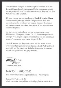 O Mors verso, Polyfoon met Hendrik Vanden Abeele Discover more from Psallentes Oude Muziek Subscribe to get the latest posts sent to your email. Type your email… Subscribe Share this!MoreTweet Click to share on Reddit (Opens in new window) Reddit Share on Tumblr Click to print (Opens in new window) Print Click to email a link to a friend (Opens in new window) Email Like Loading... Leave a comment Cancel reply Δ